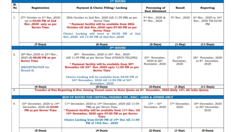 NEET 2020 MOP-UP ROUND FOR CENTRAL/DEEMED UNI./ESIC/ AIIMS & JIPMER ONLY
